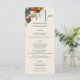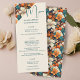 Hochzeitsmenü der eleganten tropischen Blume. Genießen Sie Ihren besonderen Tag mit diesem eleganten und romantischen Hochzeitsmenü mit atemberaubendem Blumendesign auf einem aquamarinen und orangefarbenen Hintergrund. Personalisieren Sie es mit Ihren Namen, Hochzeitstag und Menü.