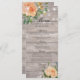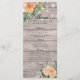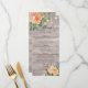 Hochzeitsmenü Rackkarten Vorlagen - Elegantes Script mit Peach White Roses Floral und String Lights auf rustikalem Holzhintergrund. Ein perfektes Design für Ihren großen Tag! Alle Textstile, Farben, Größen können an Ihre Bedürfnisse angepasst werden.