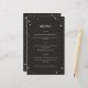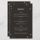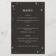 Dieses himmlische Hochzeitsmenü ist Teil einer Sammlung, die mit Tarot-Karten inspiriert wird. Dieses Design zeichnet sich durch einen Rahmen mit illustrierten Sternen in einer schwarz-cremefarbenen Palette aus. Dies wäre ideal für eine himmlische Hochzeit oder für jeden, der einen leckeren oder witzigen Stil für seine Hochzeitskarte will.