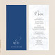 Dieses Design verfügt über eine Hochzeitskarte mit einem eleganten Kalligrafieschrift, klassisch blauem Blumendesign, einem einfachen Speisesaal und einem Ampersand Monogramm auf der Rückseite.