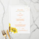 Hochzeitsmenü für Sonnenblumen Menükarte