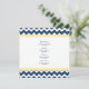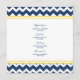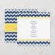 Hochzeitsmenü in elegantem dunkelmarineblau, hellgelb und weiß mit lustigen Retro-Zickzack Zickzackmustern, anpassbar mit Ihren Details und erhältlich in passenden Hochzeitsprodukten.