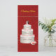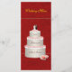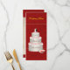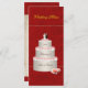 Hochzeitskuchen mit den Paarnamen & Datum auf einem roten Samt Hintergrund. Menü auf der Rückseite Kann auch für ein Hochzeitsprogramm verwendet werden