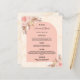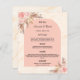 Eine elegante bohemianische Hochzeitskarte. Personalisieren und fügen Sie Ihre Namen, Datum und das Hochzeitsmenü. Goldener Marmorprint als Hintergrund. Dekoriert mit rosafarbenen Blumen und Pampas-Gras.