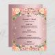 Eine elegante Hochzeitskarte. Dusty Rose, rot rosa Imitate metallisch aussehen Hintergrund und Imitate Glitzer Staub. Die Einrichtung ist in rosa Rose mit viel Wasser gehalten. Personalisieren und fügen Sie Ihre Namen, Datum und das Hochzeitsmenü. Schwarze Buchstaben.