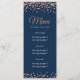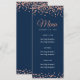 Elegante Hochzeit Empfang Party Menü Design mit Rose Gold Imitate Glitzer Confetti Navy Blau und benutzerdefinierten Text. Beeindrucken Sie Ihre Familie und Freunde mit diesem stilvollen und modernen Design.