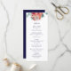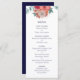 Der gesamte Text kann auf diesem Hochzeitsmenü angepasst werden. Das Aquarellrosa-Bouquet und das dunkelblaue Hintergrunddesign sind Teil einer Hochzeitskollektion.