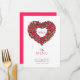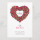 Hellrot, schwarze Kontur mit Frühlingshöhe und weißes Abendmenü. Bearbeiten Sie dieses 4-Gänge-Menü mit der eigenen Menüoption. Einfache, aber moderne Blume und Blätter mit Tulpenmuster in Herzform mit Monogramm im mittleren Design. © Original Hand botanisches zeichn und Design von Sarah Trett für www.mylittleedenweddings.com exklusiv auf zazzle.