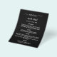 Bitte beachten Sie, dass dieses Menü auf Flyer Papier und sehr dünn ist. Für dickere Menüs (das gleiche Design) besuchen Sie bitte unseren Shop. Ein klassisches Hochzeitsmenü. Ein schwarzer Hintergrund. Weißer Text. Personalisieren Sie Ihren Namen, das Datum und das Menü und fügen Sie es hinzu. Sie können mehr Text hinzufügen, Fotos auf der Rückseite.