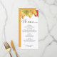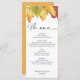 Feiern Sie mit diesem Herbstlaub Wedding Menu die Schönheit der Saison und lassen Sie Ihren Herbsttag mit einem rustikalen Charme ausklingen. Mit feinen Illustrationen von farbenfrohen Herbstblättern in Rot, Orangen und Gold ergänzt dieses Menü perfekt die Hochzeiten im Herbst mit einer gemütlichen, romantischen Atmosphäre. Die elegante Typografie und das durchdachte Layout prägen jeden Gang mit Raffinesse und führen die Gäste durch Ihre sorgfältig ausgewählten Geschirr. Auf Premium-Cardstock für ein luxuriöses Ambiente gedruckt, ist es eine bemerkenswerte Ergänzung zu Ihrem Tischfußboden, die Ihr Dekor stärkt und Ihren Gästen ein unvergessliches kulinarisches Erlebnis bietet.