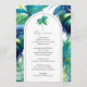 Die eleganten Hochzeitsmenüs verfügen über eine Aquarellpalme und tropische Botanicals. Verwenden Sie die Vorlagenfelder, um Ihr Abendessen oder Speiseessen einzugeben. Eine einzigartige und botanische Wahl für Hochzeiten in Urlaubsort und Inseln, Ihr Probe-Dinner oder Ihre Verlobungsfeier. Die originale Aquarellkunst von Victoria Grigaliunas und exklusiv für einen Besuch in den Parkanlagen und Gärten