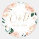 Romantischer Aquarellpfirsich mit floraler und botanischer Vegetation, mit Paaren monogramm in der Mitte, großartigen Siegel für moderne Hochzeiten, romantische Hochzeiten und botanische Gartenhochzeiten im Frühling und Sommer. Sehen Sie sich alle passenden Stücke in der Sammlung an.