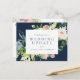 Müssen Sie Ihre Hochzeit wegen eines unglücklichen Desasters absagen oder verschieben? Pandemie? Hurrikan? Tod in der Familie? Schicken Sie eine Nachricht an Freunde und Familie mit dieser eleganten, blumengeschmückten Postkarte. Auf der Rückseite befindet sich ein großer Textblock mit Textvorschlag und passenden Blume. Sie können es auch unterschreiben. Die Vorderseite ist mit einem marineblauen Hintergrund mit weißem Text und einem Blumenrahmen in Aquarelltönen versehen. Die Farben können bearbeitet werden, indem Sie auf Anpassen klicken.