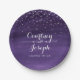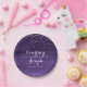 Schöne Wasserfarben waschen Nachthimmel mit grafischen Sternen und Ihre eigenen Hochzeitsnamen Papier Teller. Eine großartige persönliche Ergänzung zu Ihren Hochzeitstischen oder nach einem Hochzeitsdrink oder einer Hochzeit nach dem Party. Personalisieren Sie Ihre Brautnamen und Vornamen. Ideal für Hochzeiten mit Sternen oder Abend. Einzigartig in Aquarell und Design von Sarah Trett gemalt.