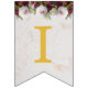 Ein Blumenbündel Fahnen-Banner passt für eine Hochzeit, mit den anpassbaren Namen der Braut und Bräutigam, vereint von &. Es gibt 16 Flaggen, genug für 7 Buchstaben und 8 Buchstaben. Die Standardnamen sind "Danielle & Michael". Goldene Kappen auf weißem Marmorboden mit bordeauxroten und weißen Pfannkugeln an der oberen Grenze. Die Vintagen Pfarrgemeinden an der oberen Grenze werden vom Maler und Botaniker Pierre-Joseph Redouté (1759-1840) gemalt und befinden sich nun im öffentlichen Bereich.