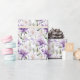 Das Faltpapier wird mit einem hübschen, lila Lilienblumendruck gezeigt. Passen Sie dieses Objekt an oder kaufen Sie, wie es ist. Lizenzierte Printwerbung