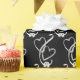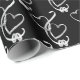 Umschlagpapier mit schwarzer Hintergrundfarbe und einem silbernen Zweiherzen-Druck. Passen Sie dieses Objekt an oder kaufen Sie, wie es ist.