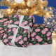 Diese Rolle des Hochzeitsverpackungspapiers wird mit einem schönen rosafarbenen Ponyprint auf schwarzem Hintergrund gezeigt. Glossy Shown Passen Sie dieses Objekt an oder kaufen Sie, wie es ist. Börsenbild freepik.com