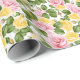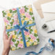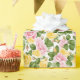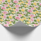 Das Umschlagpapier wird mit einem hübschen rosa und gelben Rosenprint gezeigt. Passen Sie dieses Objekt an oder kaufen Sie, wie es ist. Lizenzierte Printwerbung