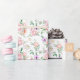 Diese Rolle Hochzeitsverpackungspapier wird mit einem schönen mehrfarbigen Blume- und Rose-Druck gezeigt. Glossy Paper Angezeigt Passen Sie dieses Objekt an oder kaufen Sie, wie es ist. Börsenbild freepik.com