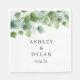 Diese Hochzeitspapierserviette wird mit einem Eukalyptusrebe-Blätter in Kunstdrucken gezeigt. Passen Sie dieses Element an, und ändern Sie den Beispieltext in Ihren Text. Lizenziertes Bild