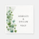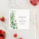 Diese Hochzeitspapierserviette wird mit einem Eukalyptusrebe-Blätter in Kunstdrucken gezeigt. Passen Sie dieses Element an, und ändern Sie den Beispieltext in Ihren Text. Lizenziertes Bild