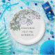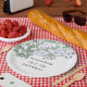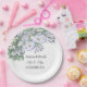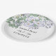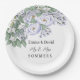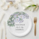 Hochzeitspapier-Teller werden in einem hübschen, blühenden Lavendel mit individuellen Beispielnamen in schwarzer Schrift gezeigt. Passen Sie dieses Element an, und ändern Sie die Beispielnamen in Ihren Namen. Börsenbild freepik.com