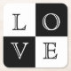 Das Set Paper Untersetzer wird in einem Schwarz-Weiß-Blockdruck angezeigt. LIEBE Passen Sie dieses Objekt an oder kaufen Sie, wie es ist.