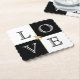 Das Papier Untersetzer Set wird in einem Schwarz-Weiß-Blockdruck mit Hochzeitsringen gezeigt. LIEBE Passen Sie dieses Objekt an oder kaufen Sie, wie es ist.