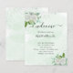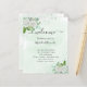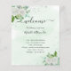 Der grüne Hintergrund ist mit weißen Blumen, Eukalyptusgrün und Imitaten mit silberfarbenem Glitzer verziert. Personalisieren und fügen Sie Ihre Namen und Ihre Hochzeitstag Zeitleiste.