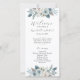 Genießen Sie den Charme einer winterlichen Hochzeitsfeier mit unserem bezaubernden Blue Winter Floral Wedding Set. Dieses exquisite Programm ist mit zarten Blumen geschmückt, die die ruhige Schönheit der Saison hervorrufen. Personalisieren Sie jedes Detail mit Ihren Namen und Datum. Finden Sie die passende Einladungspauschale, die Sie mitnehmen können!