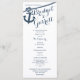 Anker und Seil nautische Design gedruckte Rack-Karte Hochzeitsprogramme in marineblau Text.
