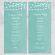 Moderne Hochzeitsfeier mit schlichter, eleganter Saitenleuchte, die oben auf einem Imitat mit Aquarellfarbenhintergrund hängt. Ein schlichtes und stilvolles Design, perfekt für den Sommer! Klicken Sie auf die IT-Schaltfläche CUSTOMIZE, um Text und Schriftart anzupassen, Text zu verschieben und ein eigenes Hochzeitsprogramm zu erstellen.