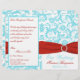 Hochzeitsprogramm für Aqua, White und Red Damask