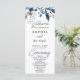 Ein atemberaubendes Hochzeitsprogramm, das schlichte Eleganz und natürliche Schönheit ausstrahlt. Die Hauptfarbe dieses Programms ist weiß, mit exquisiten blauen und grauen Beeren, Blätter und Grünpflanzen, die sich oben auf der Vorderseite konzentrieren, und ein botanisch-inspiriertes Design, das perfekt für diejenigen ist, die ein minimalistisches, Land, boho oder botanisches Thema suchen. Auf der Vorderseite des Programms befinden sich die Paarnamen, das Hochzeitstag, die Stadt und der Staat sowie die Zeremonie, die alle in einem reinen und einfachen Schriftart in schwarzem Block präsentiert werden. Die Wörter "Welcome", "Ceremony" und "Wedding Party" sind in einem hübschen, modernen Drehbuch-Schriftart verfasst und fügen dem Gesamtdesign eine Touch von Eleganz hinzu. Die Paarnamen werden in einem fett schwarzen, einfachen Schriftart mit Buchstabenabstand präsentiert, wodurch sie sich herausstellen und dem Programm eine personalisierte Touch hinzufügen. Auf der Rückseite des Programms wird die Hochzeitsfeier aufgelistet, das Paket ergänzt und den Gästen alle Informationen zur Verfügung gestellt, die sie benötigen, um den großen Tag zu genießen. Dieses Hochzeitsprogramm in verschiedenen Blautönen, vom hellen Mittelblau bis zum dunkelblauen Grau, beeindruckt und verlasse den Gästen einen bleibenden Eindruck. Insgesamt spiegelt dieses Hochzeitsprogramm den Stil und die Persönlichkeit des Paares perfekt wider, indem es das Wesentliche seiner Liebe und seines gegenseitigen Engagements festhält. Es ist eine schöne und sinnvolle Ergänzung zu jeder Hochzeitsfeier, die als ein geschätzter Pfarrer dient, der für viele Jahre geschätzt wird.
