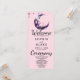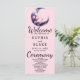 Die Einführung unseres Celestial Blush Wedding Programms, eine wunderbare Mischung aus Romantik und Zauber, die Ihrem Hochzeitstag eine Touch himmlischer Magie verleihen wird. Das Programm mit seinem sanften rosa Hintergrund erinnert an einen malerischen Sonnenuntergang und ist die perfekte Leinwand für einen zauberhaften blauen und lila Halbmond. Der Mond ist von blauen und lila Wolken geschmückt und mit einem himmlischen Tanz aus gelben, goldenen und goldenen Sternen der Rose geschmückt, der eine wirklich faszinierende und ansonsten weltliche Atmosphäre schafft. Auf der Rückseite des Programms wird Ihre angesehene Hochzeitsfeier in anmutiger Reihenfolge aufgeführt, wobei ihre wichtige Rolle in Ihrem besonderen Tag anerkannt wird. Der Programmtext wird sorgfältig in einer harmonischen Kombination aus Schwarz und Grau präsentiert, wobei in erster Linie ein einfacher Schriftart für Klarheit und Lesbarkeit verwendet wird. Die Begriffe "Willkommen", "Zeremonie" und "Hochzeitsfeier" sind jedoch elegant in einem dekorativen Schriftart geschrieben, was dem Design eine Touch von Eleganz verleiht und das gesamte Himmelsthema verstärkt. Unser Celestial Blush Wedding Programm ist die perfekte Wahl für Paare, die ein einzigartiges und mystisches Hochzeitstil suchen. Mit seiner harmonischen Farbpalette und seinen eleganten Script-Schriftart dient dieses Programm nicht nur als praktischer Leitfaden für Ihre Gäste, sondern wird auch zu einem hochgeehrten Sake, der die ätherische Schönheit einer mondbeleuchteten Nacht erahnen lässt. Erhöhen Sie Ihre Hochzeit mit dem Celestial Blush Wedding Program, einem Zeugnis Ihres Set über die Geschichte Ihrer Liebe vor dem Hintergrund des mystischen Kosmos.
