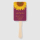 Hochzeitsfans aus Burgund und Gelb. Einfaches Hochzeitsprogramm-Fandesign mit einer schönen gelben Sonnenblume, gepaart mit einem bordeauxfarbenen oder maronfarbenen Hintergrund. Perfekt für Sommer oder Herbst / Herbst.