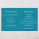 Schöne Aqua blauen Kühe Petersilie Kontur Blume Hochzeitsprogramm. Modernes, schicke Hochzeitsdesign im Vogelkäfig - romantisches Hochzeitsfest-Set. Hübsche Pastelltöne, aquamarin blau auf weißem Hintergrund. Bearbeiten Sie dieses Hochzeitsprogramm mit Ihrem eigenen Namen, Terminen, Zeremoniell, Begleitern von Hochzeitsfeiern und vielen Dank. Einfaches und dennoch elegantes Programm ersetzt einfach den Sample-Text durch Ihre Hochzeitsinformationen und faltet die Programme bei Lieferung in der Mitte. Moderne Blume zeichnend im Stil der Kuh Petersilie Anthriscus sylvestris, auch bekannt als Wildkirsche, wilde gebackene Petersilie, Keck oder Königin Anne's Spitze. Einzigartige Kunst und Design von Sarah Trett.