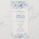 Das Floral Chinoiserie Wedding Program ist eine elegante Hochzeitskarte, die mit Chinoiserie-Mustern und raffinierten Blumendetails entworfen wurde. Diese Karte informiert die Gäste über die Zeremonie und Veranstaltungen und hilft ihnen, den ganzen Tag über zu folgen. Mit seinem klassischen und raffinierten Stil kann dieses Hochzeitsprogramm an das Thema und die Farben Ihrer Hochzeit angepasst werden und schafft so einen einheitlichen und eleganten Look für Ihre Hochzeitsarbeit.