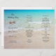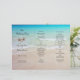 Tropisches Hochzeitsprogramm mit Meerwasser und Strand. Falten Sie dieses Papier nach dem Kauf in drei Hälften. Schwarzer Text mit zwei realistischen Seestern, um das Paar zu repräsentieren. Nach dem Falten, wie ein Akkordeon, wird der verlassen Abschnitt die Vorderseite sein. Das Zentrum wird die Reihenfolge der Zeremonie sein, wobei die rechte Seite die Mitglieder der Hochzeitsfeier, Beamte und andere wichtige Personen auflistet.