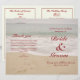 Dieses Hochzeitsprogramm am Strand bietet einen Hintergrund eines Fotos eines Sandstrandes auf dem Cover, während das Innere des Programms einen schlichten Elfenbeinhintergrund aufweist. Sie können einfach mit Ihren eigenen Informationen personalisieren. Füllen Sie die Möglichkeit, Text nach Bedarf hinzuzufügen und zu löschen. Wir bieten auch koordinierende Einladungen und Einschließungskarten, speichern Sie die Daten, Briefmarke, Gunst Aufkleber, Dankeschön Noten, Magnete und andere Gegenstände, um einen einheitlichen Look für jede Hochzeitsfeier zu schaffen.