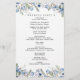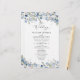 Dieses elegante Hochzeitsprogramm aus unserer Kollektion Dusty Blue Pressed Floral bietet niedliche Aquarellflorale mit zarten grünen Weinreben, gepaart mit einem modernen Script-Schriftart. Ideal für jede Jahreszeit. Um vorzeitige Änderungen vorzunehmen, wählen Sie Personalisieren -> Bearbeiten mit dem Entwurfstool.