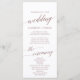Dieses elegante Rose-Goldkalligraphie-Hochzeitsprogramm ist perfekt für eine einfache Hochzeit. Das rot-rosa Design besticht durch eine minimalistische Karte, die mit romantischen und skurrilen Imitaten Rose Goldfolie Typografie dekoriert ist. Geben Sie den Namen der Braut und des Bräutigams, das Datum und den Ort der Hochzeit, Dankeschön-Nachricht, Dienstordnung, Brautparty und ein optionales "in Loving Memorial" ein. Bitte beachten Sie: Dieses Design enthält keine echte Goldfolie der Rose. Es ist eine qualitativ hochwertige Grafik, die wie Rose Goldfolie aussieht.