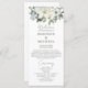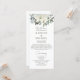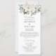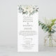 Fügen Sie Ihrer Zeremonie eine sanfte, romantische Touch mit diesem eleganten, blumengeschmückten Hochzeitsprogramm in Elfenbein hinzu. Oben bilden zarte Elfenbeinfloralen und Grünpflanzen eine anmutige Anordnung, die den reinen weißen Hintergrund perfekt ergänzt. Im Folgenden werden Ihre Zeremoniedetails in moderner schlängelgrüner Kalligraphie und Schrift dargestellt. Dieses minimalistische und dennoch raffinierte Programm ist ideal für rustikale, ländliche, garten oder elegante blumengeschmückte Hochzeiten. Ein schöner Sake und ein praktischer Führer für Ihre Gäste.