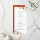 Eleganter Watercolor Herbst Botanischer Blumenrahmen, Hochzeitsprogramm. Schwarz-Weiß-Typografie mit der Koordination von Weiß- und Terracotta-Orange-Hintergrundfarben.