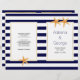 Der Strand ist mit Stacheln und blauen Streifen bedeckt und wird von einer Hochzeitsfeier und einem Party-Programm abgerundet. Die Elemente dieser Hochzeitsvorstellung sind das marineblau-weiß gestreifte Muster und der Sternfisch auf einem weißen Rahmen mit Ihrem Text. Wählen Sie nur das Wertpapier für dieses Programm aus, da es sich gut faltet und manuell in die Mitte falten.