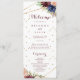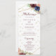 Dieses geometrische Hochzeitsprogramm in Gold Glitzer ist perfekt für eine rustikale Hochzeit. Das Design ist mit handgezeichnet Aquarell-lila, Marineblau, Rot, Bordeaux, Marineblau-Blume, grünen und goldenen Blätter, die einen eleganten geometrischen Rahmen schmücken.