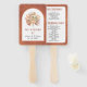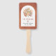 Tropisch getrocknete Palmen Blätter, Pampas Gras und Protea-Blume Terracotta Botanische HochzeitsHand Fan Programm. Dieses schöne Hochzeitsdesign besticht durch einen Bogenrahmen auf Terrakotta-farbenem Hintergrund. Im Rahmen befindet sich ein Blätter aus getrockneten Palmen, Protea-Blume und Pampas-Gras.