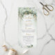 Stellen Sie sich ein traumhaftes Hochzeitsprogramm vor, das mit einem üppigen Set aus grünem Blattwerk und einem atemberaubenden goldenen Rahmen geschmückt ist und eine Aura der Eleganz und des Zaubers für einen besonderen Tag perfekt verkörpert. Dieses aufwändige Design bringt eine Touch von Eleganz und Naturschönheit in das Event und schafft einen anmutigen und entspannten Ton, der die fröhliche Feier von Liebe und Gewerkschaft wunderbar ergänzt. Dieses Hochzeitsprogramm mit üppiger Vegetation und goldenen Akzenten schafft mühelos eine kuschelige Atmosphäre, die ein unvergessliches und charmantes Erlebnis für alle verspricht.
