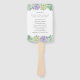 Botanische Hochzeitsprogramm-Handventilatoren mit einem oberen und unteren Rand, bestehend aus grünen und lila Aquarellbildern vorne und einem oberen Rand hinten. Ihre Daten sind in einem weichen grauen Schriftart. Fügen Sie Ihre Zeremonie Veranstaltungen auf der Vorderseite und Ihre Hochzeitsfeier und optional danke Ihnen Nachricht auf der Rückseite. Diese Fans helfen Ihnen, Ihre Gäste während einer Hochzeit im Freien cool behalten und bieten Ihnen den passenden Service. Diese sind auch für ein großartiges Souvenir und perfekt für eine Wüstenhochzeit im Frühling oder Sommer
